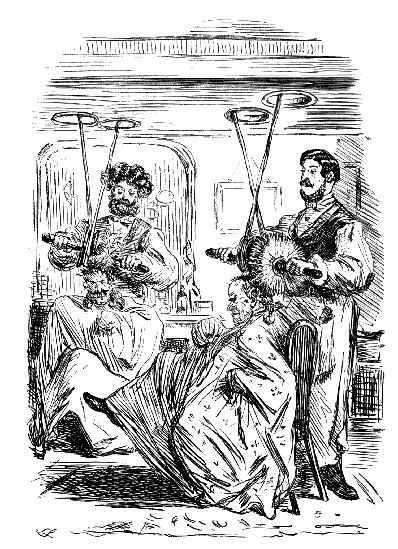 Adolphus (probably in the hair-cutting line). "THEY DO, INDEED, MY LOVE! THEY REMIND ONE OF THE MOST DELICIOUS 'AIR OIL!"