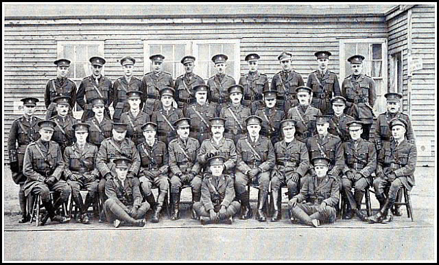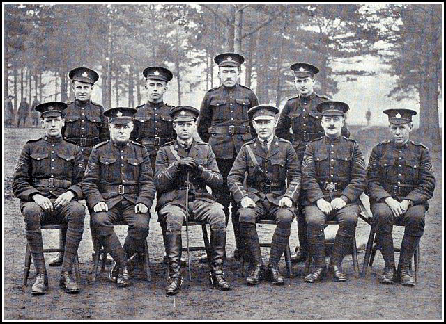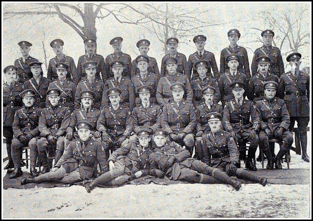 Third Row:—Lt. H. H. Hyland, Lt. J. J. Doble, Capt. W. E. Shier, Maj. F. H. Moody, Maj. H. P. Cooke, Capt. A. F. Hind, Maj. G. W. P. Every, Capt. A. W. Pratt, Capt. H. V. Gould, Capt. H. L. Major, Capt. G. E. Gilfillan.