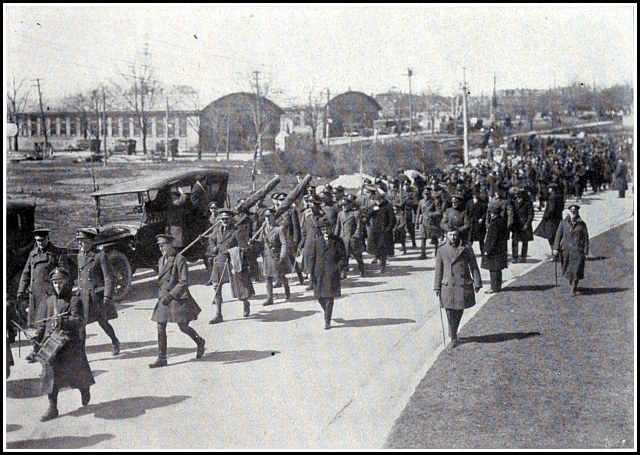 The public buildings throughout the County were placed under guard, and upwards of 300 aliens were paroled and kept under surveillance. Great credit is due to Major A. F. Hind, at that time Chief of Police in Oshawa and later an officer in the 116th Battalion, for the efficient way in which this work was carried on.