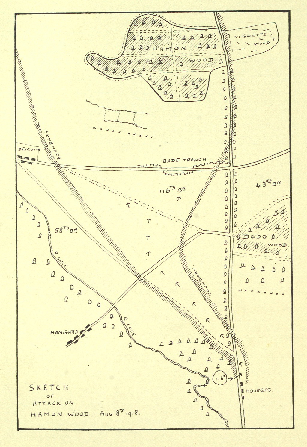 The object of this being to give the Battalion training in actual warfare with men who were already experienced in front line work. Further, each Company was split up so that one platoon was apportioned to each Company of the different Battalions as above, and all that now remained of the youthful 116th was an ardent desire to get through the “baptism of fire” with as much glory and as few casualties as possible.