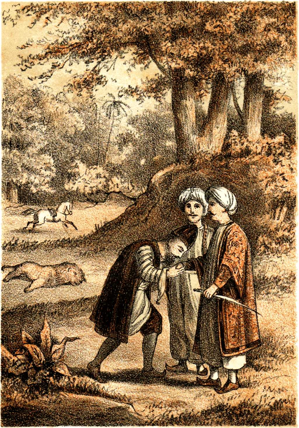 De sultan beminde zijn' zoon met meer dan vaderlijke teederheid, waarvan hij hem dagelijks blijken gaf, en toen deze zijn vijftiende jaar bereikt had, wilde hij daarvan een nog treffender bewijs geven, door ten behoeve van zijn' zoon van den troon afstand te doen. Hij sprak hierover met zijn' groot-vizier. „Ik vrees,” zeide hij, „dat mijn zoon, door zijne jongelingsjaren in ledigheid door te brengen, verliezen zal, niet alleen de schoone gaven en de deugden, waarmede de natuur hem zoo mild bedeeld heeft, maar zelfs die, welke hij heeft verkregen door de zorgvuldige opvoeding, welke ik hem heb laten geven. Daar ik nu op eenen ouderdom ben, die mij aan een stil leven doet denken, zoo ben ik bijna besloten hem de regering over te dragen, en het overige van mijn leven toe te wijden aan het vermaak, mijn' zoon te zien regeren. Ik ben reeds zoo vele jaren onvermoeid werkzaam geweest, dat ik behoefte aan rust heb.”