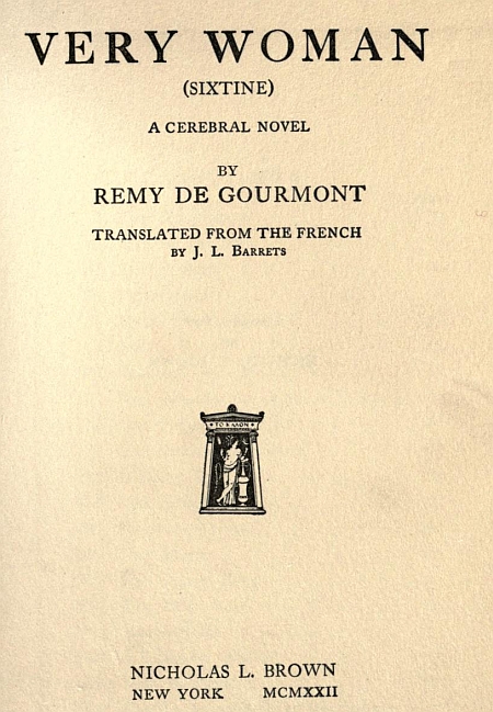 "In losing you, Sixtine, I have found myself again. But I confess, Madame, that it is not a compensation worth considering. Although you judged me an egoist and although I admit this charge, I bear myself no love. A little hate, rather, when I surmount indifference, for I feel that I am only a bad instrument in the hands of an unknown and transcendental Master,—a Master who laughs so apropos when I abuse my soul.... Destined to what labor? Ah! he knows!...