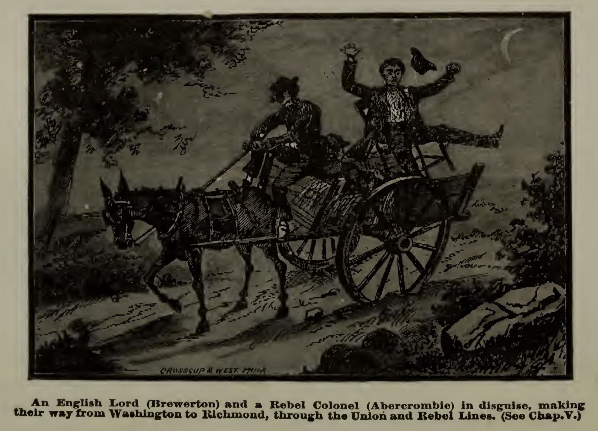 Cotton and Gold Markets in 1863—What They Indicated—Great Divorce Trial—Arguments on Both Sides—First Confederate Loan—By whom Taken—Arrival in New York of Lord Brew-erton—His Conference with President McLane—Goes to Baltimore, and whom he Meets—Then on to Washington—Scene in Ben. Beveridge's Saloon—Then to English Embassy—Remains with Lord Lyons—Concludes to go South—How he Goes—His Disguise—Hiding in Negro Hut—Midnight Ride Behind a Blind Mule, in a Two-wheel Dirt Cart—How he Gets Through the Union Lines—Arrival in Richmond—Stops with President Davis—Grand Ball at Executive Mansion in Honor of Lord Brewerton—The Dresses of, and who Present—Trip Through Confederate States—His Report to President Davis—Returns to Washington—Attends President Lincoln's Levee with Confederate Officer—Reports to Philadelphia and New York Cotton Rings—Returns to England—Other English Lords in the Confederate States—Sons of Peers in the Confederate Army—All After the Gold Nuggets
