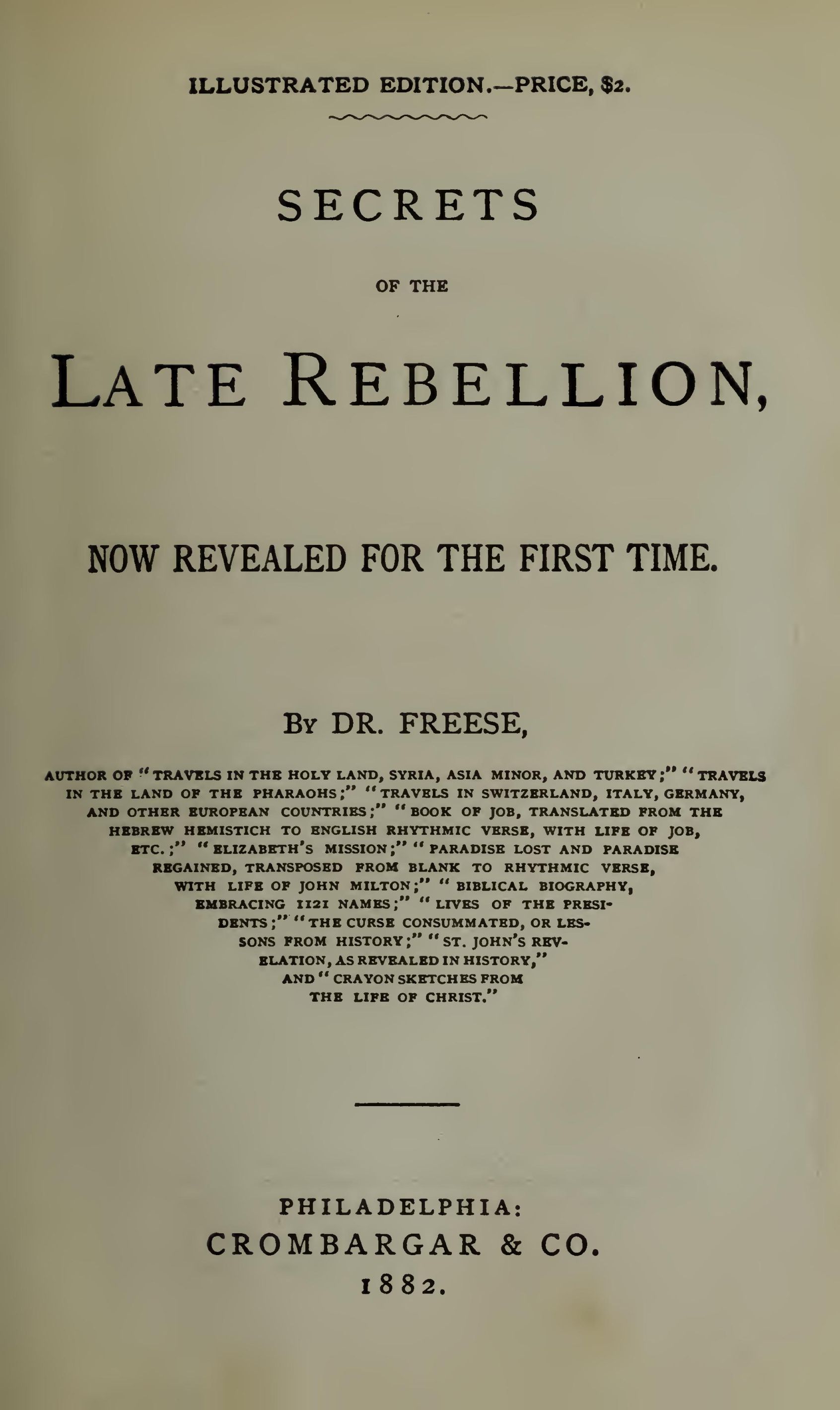 To this inquiry, we answer yes, and will now proceed to show, briefly but unmistakably, how they have been carrying out such intentions; and this, too, comes legitimately under the head of "Secrets of the Late Rebellion, now Revealed for the First Time," since no one, to our knowledge, has ever heretofore shown the close relationship and unity of purpose between these same European governments and the Democratic party of the United States; and how, in the late rebellion (as in many instances before that time), they joined hands to destroy this government, and to break down the liberty of the press.