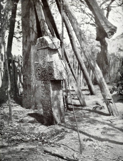 At the end of the road stood a well, its long pole like a giant finger pointing eternally to the sky. Beside it an old stone cross leaning on one side as though tired, a cross erected with the well in remembrance of some one who was dead....