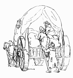 [38] 'Lord Barrymore's phaeton was a very high one; and after our midnight revels in town I have often travelled in it with him to Wargrave. One very dark night, going through Colnbrook, in the long street called Featherbed Lane, he kept whipping right and left, breaking the windows, delighted with the noise as he heard them crack—this he called fanning the daylights.'—Angelo's Memoirs.