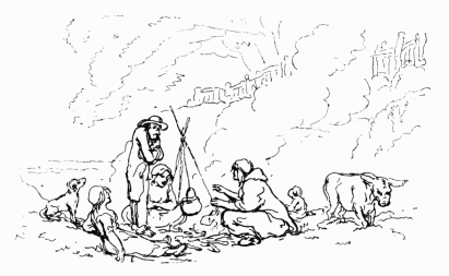 [6] The original sketches of this series were recently bequeathed to the South Kensington Museum, where they are attributed to Bunbury: a contemporary advertisement (1786) announces the designs to the forthcoming Journal of a Tour in the Hebrides to be furnished by Collings and Rowlandson.