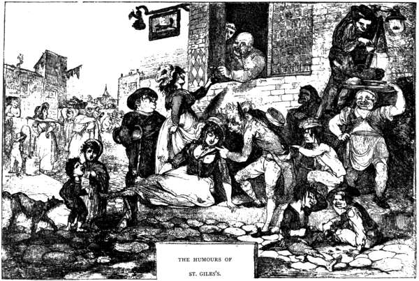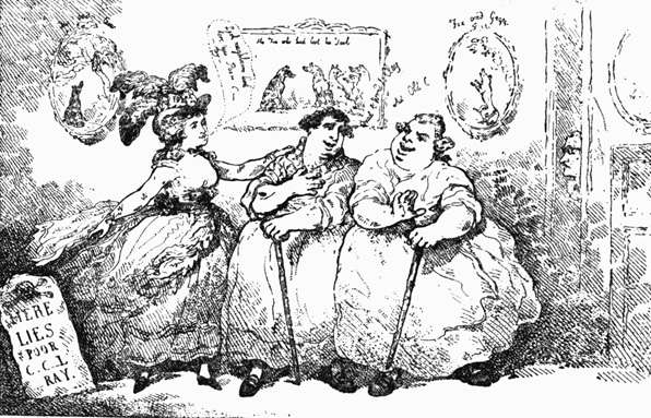The whimsical conceptions which owe their origin to Gillray, Rowlandson, Bunbury, Ramberg, Woodward, Dighton, Nixon, Newton, Boyne, Collings, Kingsbury, Isaac Cruikshank, his son, 'the glorious George,' the veteran calcographist, who has just passed away full of years and reputation, Lane, Heath, Seymour, and a bevy of their contemporaries, were in their day tolerably familiar, their etchings and sketches were in the hands of the print-buying public of the[3] period, and they enjoy, as far as these relics of the past are concerned, a posthumous reputation which varies according to the merits of their productions, a generation or two having assigned them their just relative positions on the ladder of fame; all the inimitable amusing travesties which reproduce the manners, and even the sentiments of past celebrities and perished generations, owe their creation to artists who were suffered to labour in partial obscurity; while the creatures of their brains were in the hands of every one, their contemporaries, for the most part, did not trouble themselves sufficiently to reflect whether the designers had any real existence, possibly classing the actual, practical, living, and working men under the category of abstract ideas in their own minds, impalpable atomies, less substantial than their tangible satirical pictures, which enjoyed a popular circulation.