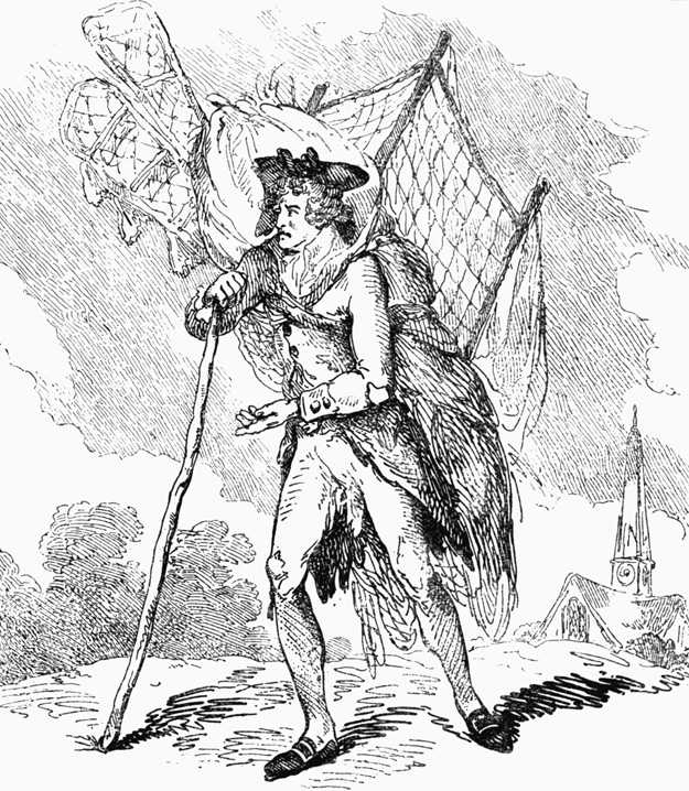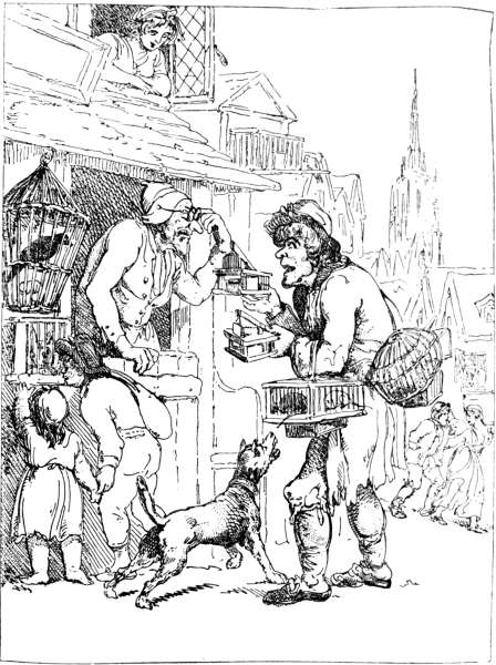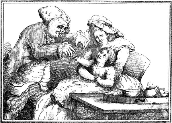 [7] A somewhat different version of the origin of this caricature is given in the Memoirs of John Bannister, Comedian, by John Adolphus (8vo., 1839): 'His friend and fellow-student Rowlandson was, unhappily, much addicted to games of chance, and Bannister used to remonstrate with him on the subject with amiable but ineffectual perseverance. On one of these occasions John Raffaelle Smith, the engraver, admonished Bannister on the inutility of his efforts. "You may spare your sympathy and advice also," he said; "for that Tom Rowlandson was, is, and ever will be incurable." The artist, in merry revenge, brought out a print called Hawks and a Pigeon, in which Smith, endowed for the occasion with a most villanous aspect, the very personation of a sharper and a knave, exhibited conspicuously.