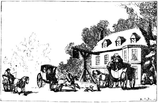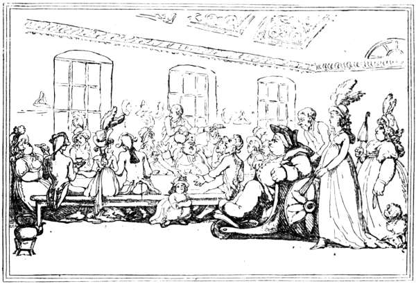 The same observation applies to Mr. William Tegg, whose father, the indefatigable and well-known Thomas Tegg of Cheapside, published hundreds of the satirist's later and cruder caricatures, which were more generally familiar in the windows of printsellers, &c., since copies were multiplied to a larger extent than was practicable in the case of delicately finished aquatints, which gave fewer impressions, and commanded higher prices. Consequently, Rowlandson is better known to the public by his least desirable prints, and under his most common-place aspect. Mr. S. W. Fores seems to have issued an important[7] proportion of Rowlandson's larger and more valuable plates, with the addition of an immense number of small subjects etched by Rowlandson, and finished by clever aquatinters, published in a more costly form than was generally the custom of the time. The successors of this gentleman have mentioned that the firm has not preserved any list of the publications issued under its original and well-recognised standing, in respect to satirical production, as Fores' Caricature Museum, but it is understood that, at the present writing, there still remains in the house a collection, in huge volumes, of early impressions from the multitudinous plates issued from the establishment under its earlier auspices—a publisher's summary, in short, such as, it is to be regretted, is rarely preserved for any length of time. Unfortunately, owing to the exigencies of their modern print business, the writer has not been permitted to consult this highly interesting collection; he has, however, been informed, as an equivocal sort of consolation for his discomfiture, by the member of the firm to whom his application was addressed, that the major part of the prints, as far as the works of Rowlandson are concerned, are of a political character, and that the interesting and valuable social engravings are wanting; he also learns that nothing of importance by Rowlandson is to be found in this collection.