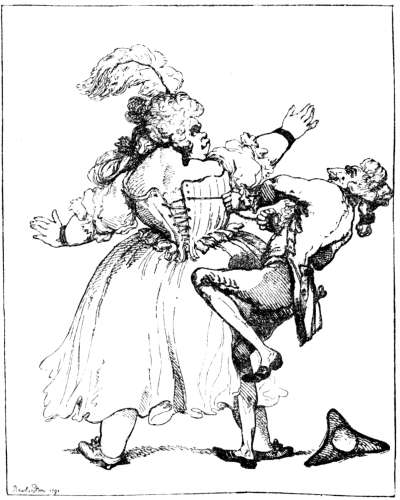 The writer has necessarily made the acquaintance of several gentlemen who are fervent collectors of Rowlandson's works, and he by no means ignores his obligations to those happy possessors of rarer specimens, who have frequently carried them off with an air of conquest from discomfited rival amateurs, the condition of their purses, and the artistic enthusiasm aroused at the moment,[9] rendering similar triumphs comparatively facile, when incidental questions as to actual worth are too insignificant to engage the attention.