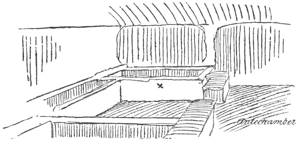 I had what I can only describe as a qualm when we reached, in but a few hundred steps, the Church of the Holy Sepulchre. It was all too easy and too quick. You can imagine the sense of reluctance to enter there without more recollection. I had a feeling of regret that we had not waited till the morrow, and I would warn others not to go on the day of arrival. We reached the Church through stone lanes of indescribable picturesqueness, teeming with the life of the East, and there I saw the Jerusalem Jews I had so often read of—extraordinary figures in long coats and round hats, a ringlet falling in front of each ear, while the rest of the head is shaved. They looked white and unhealthy, many of them red-eyed and all more or less bent, even the youths. No greater contrast could be seen than between those poor creatures and the Arabs who jostle them in these crowded alleys, and who are such upstanding athletic men, with clear brown skins, clean-cut features, and heads turbaned majestically. They stride along with a spring in every step. There are Greeks here, and Russians in crowds, and Kurds, Armenians, and Kopts—in fact samples of all the dwellers of the Near East, wearing their national dresses; and through this fascinating assemblage of types and costumes, most distracting to my thoughts, we threaded our way to-day, ascending and descending the lanes and bazaars, up and down wide shallow steps, till we came in front of the rich portal of the Church of churches. With our eyes dazzled with all that colour, and with the sudden brilliance of the sunshine which flooded the open space in front of the façade, we passed in! Do not imagine that the church stands imposingly on an eminence, and that its proportions can strike the beholder. You go downhill to it from the street, and it is crowded on all sides but the front by other buildings. But its gloomy antiquity and formlessness are the very things that strike one with convincing force, for one sees at once that the church is there for the sake of the sites it encloses, and that, therefore, it cannot have any architectural symmetry or plan whatever, and its enormous extent is necessitated by its enclosing the chapels over Calvary and the Holy Sepulchre and many others besides, which the Empress Helena erected over each sacred spot whose identity she ascertained with so much diligence. It is very natural to wish that Calvary was in the open air,—lonely, under the sky that saw Christ suffer on the Cross. But already, in the year 326, St. Helena found the place of execution buried under mounds of rubbish purposely thrown upon it; and where would any trace of it be to-day had she not enclosed it—what with man’s destroying acts and the violence of the storms that have beaten against this rock for nineteen centuries and more? It was, to begin with, but a small eminence close outside the walls. On entering the church you discern in the depths of the gloom of the tortuous interior the rough steep steps cut in the rock that lead to Calvary, on your right hand. On climbing to the top, groping in the twilight, you find yourself in a chapel lined with plates of gold and hung with votive lamps. The sacred floor, which is the very top of Calvary, is entirely cased in gold, and under the Greek altar is shown the socket of the Cross, a hole in the rock. Our altar stands to the proper left of the Greek, which has the post of honour. Descending from Calvary there is a long stretch of twilight church to traverse before we come to the sepulchre. Again I had not realised, from the books I have read, the great distance that separates the two, and, indeed, many writers in their scepticism have done their best to belittle the whole thing. I confess that before to-day I was much under the influence of these writers, but I have now seen for myself, a privilege I am deeply thankful for. It was an overwhelming sensation to find the spaces that separate the sites so much vaster than I had expected, and to have, at every step, the conviction driven home that after all the modern wrangling and disputing the old tradition stands immovable. It certainly would be hard to believe that when St. Helena came here the dwellers of Jerusalem should have lost all knowledge of where their “Tower-hill” stood in the course of three centuries. She was commissioned, as you know, by her son the Emperor Constantine, that ardent convert to Christianity, to seek and secure with the utmost perseverance and care all the holy sites, and to her untiring labours we owe their identification to this day. The great central dome of the church rises above the chapel of the Holy Sepulchre, which chapel stands in the vast central space, a casket enclosing the rock hollowed out into Our Lord’s Tomb and its ante-chamber. You enter this ante-chamber and, stooping down, you pass on your hands and knees into the sepulchre itself. On your right is the little low, rough-hewn tomb, covered with a slab of stone worn into hollows by the lips of countless pilgrims throughout the long ages of our era. A monk keeps watch there, and beside him there is only space enough for one person at a time. I have made many attempts to tell you my thoughts and feelings during those bewildering moments of my first visit, but I find it is impossible, and you can understand why.