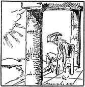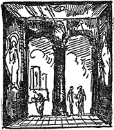 For the first time in my life I was confronted by the phenomenon of audible silence. When we had climbed the first flight of stairs, I added another discovery to my limited knowledge of natural phenomena—that of tangible darkness. A match showed us where the upward road continued. We went to the next floor and then to the next and the next until I had lost count and then there came still another floor, and suddenly we had plenty of light. This floor was on an even height with the roof of the church, and it was used as a storeroom. Covered with many inches of dust, there lay the abandoned symbols of a venerable faith which had been discarded by the good people of the city many years ago. That which had meant life and death to our ancestors was here reduced to junk and rubbish.[x] The industrious rat had built his nest among the carved images and the ever watchful spider had opened up shop between the outspread arms of a kindly saint.