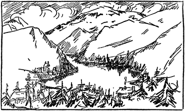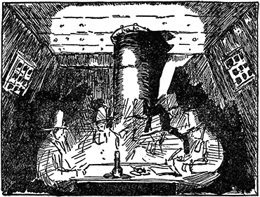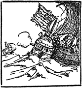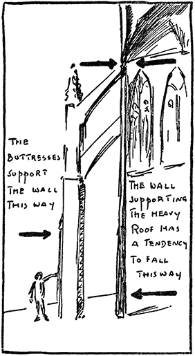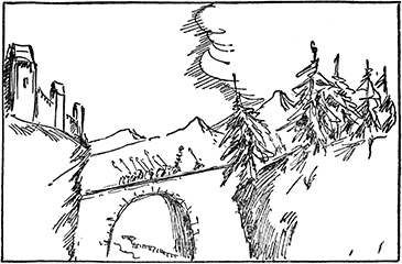Here the stairs came to an end and the ladders began. And after the first ladder (a slippery old thing which made one feel his way with a cautious foot) there was a new and even greater wonder, the town-clock. I saw the heart of time. I could hear the heavy pulsebeats of the rapid seconds—one—two—three—up to sixty. Then a sudden quivering noise when all the wheels seemed to stop and another minute had been chopped off eternity. Without pause it began again—one—two—three—until at last after a warning rumble and the scraping of many wheels a thunderous voice, high above us, told the world that it was the hour of noon.