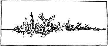 Then there were the little villages, clustering around the protecting church which once, many years ago, had been the[xii] home of their Patron Saints. In the distance we could see the leaning tower of Delft. Within sight of its high arches, William the Silent had been murdered and there Grotius had learned to construe his first Latin sentences. And still further away, the long low body of the church of Gouda, the early home of the man whose wit had proved mightier than the armies of many an emperor, the charity-boy whom the world came to know as Erasmus.