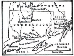 In 1636 Thomas Hooker, the pastor of the church at Newton (now Cambridge), moved with his entire congregation to the banks of the Connecticut and founded the city of Hartford. Hooker did not like the way the Puritans acted in matters of government. He thought religious affairs and state affairs in the Massachusetts Bay Colony were bound too closely together. He thought also that more people ought to be allowed to vote than were allowed that privilege in the Puritan colony. Besides, was not the rich valley of the Connecticut a better place for homes than the rocky and barren hills around Boston? Hooker and his followers took their wives and children with them. They carried their household goods along and drove their cattle before them. As they moved overland through the roadless forests of Massachusetts, they took the first step in that great Westward Movement which continued for more than two hundred years and which did not come to an end until the far-off Pacific was reached.