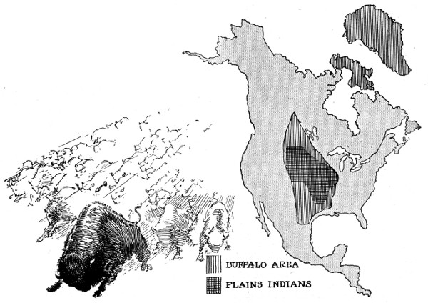 Our map diagram indicates the approximate distribution of the buffalo grounds prior to 1800; limitations, Mississippi River, Rocky Mountains, Gulf of Mexico and Great Slave Lake.