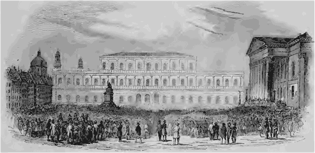 Place du palais et du théâtre, à Munich.--Le roi haranguant le peuple.
