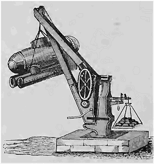 Le mouton à vapeur est une précieuse application de la force de la vapeur au battage des fers. Jusqu'à présent les marteaux et martinets sont généralement mus par l'eau, et les coups qu'ils donnent en retombant de tout leur poids sur l'enclume sont à peu près uniformes, ou au moins on ne peut pas en modérer la force à volonté. Ce nouveau marteau se compose d'un cylindre à vapeur à simple effet, avec un piston dont la tige traverse le fond du cylindre, pour être fixée ensuite au mouton. Le cylindre est monté sur une charpente en fonte qui sert de coulisse au mouton. Au moyen de cet appareil, et à la volonté du conducteur, sur deux coups qui se suivent, l'un est capable de pénétrer dans une masse de fer chaud, comme dans de l'argile, et l'autre peut être assez doux pour faire entrer à moitié seulement un clou dans le bois le plus tendre. Cette machine peut employer sa puissance à des coups longs et terribles, ou bien, se réglant elle-même, faire tomber sur l'enclume des coups modérés par centaines et par minute. Le mécanisme consiste simplement dans l'appareil qui permet l'introduction et la sortie de la vapeur. Si la vapeur, après être entrée et avoir soulevé le piston et le marteau, sort brusquement, le marteau retombe de tout son poids; si elle sort peu à peu, le marteau redescend doucement. Une discussion s'est élevée entre un Anglais, M. Nasmith, et M. Schneider, pour savoir à qui appartient la priorité de cette invention. Sans vouloir entrer dans ce débat, ni expliquer les raisons de notre conviction, nous dirons que, des explications données par ces derniers, il résulte pour nous la certitude que la priorité appartient à M. Bourdon, ingénieur mécanicien en chef du Creusot.