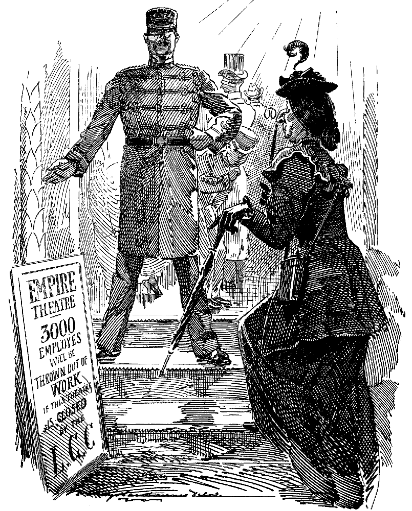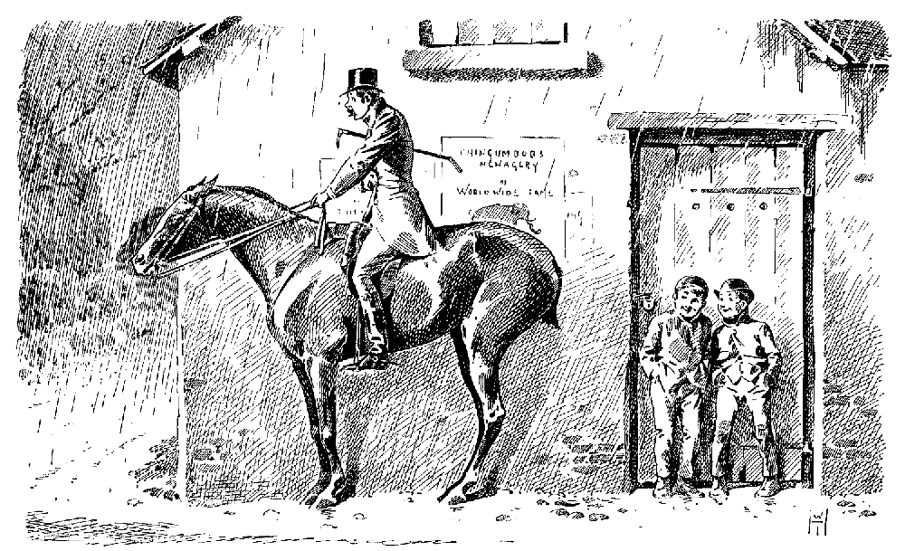 Spurr. (attempting to follow). But, Emma, stop one—— She's gone!... Confound it, there's the butler and a page-boy coming! It's no use staying up here any longer. (To himself, as he goes downstairs.) It's downright torture—that's what it is! To be tied by the leg in the Drawing-Room, doing the civil to a lot of girls I don't care a blow about; and to know that all the time some blarneying beggar downstairs is doing his best to rob me of my Emma! Flesh and blood can't stand it; and yet I'm blest if I see any way out of it without offending 'em all round.