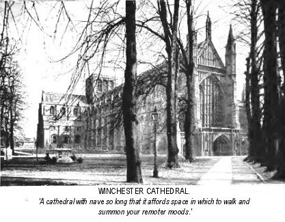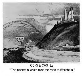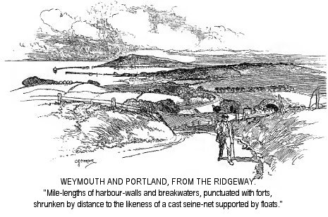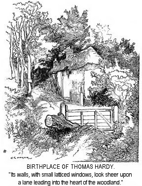 To all these natural advantages has been added in our generation the romantic interest of Mr. Thomas Hardy’s novels of rural life and character, in which real places are introduced with a lavish hand. The identity of those places is easily resolved; and, that feat performed, there is that compelling force in his genius which inevitably, sooner or later, magnetically draws those who have read, to see for themselves what manner of places and what folk they must be in real life, from whose characteristics such poignant tragedy, such suave and admirable comedy, have been evolved. I have many a time explored Egdon, and observed the justness of the novelist’s description of that sullen waste: have traversed Blackmoor Vale, where “the fields are never brown and the springs never dry,” but where the roads—it is a cyclist’s criticism—are always shockingly bad: in fine, have visited every literary landmark of the Wessex Novels. If I have not found the rustics so sprack-witted as they are in The Return of the Native and other stories—why, I never expected so to find them, for I did not imagine the novelist to be a reporter. But—this is in testimony to the essential likeness to life of his women—I know “Bathsheba”; only she is not a farmer, nor in “Do’set,” and I have met “Viviette” and “Fancy.” They were called by other names, ’tis true; but they were, and are, those distracting characters come to life.