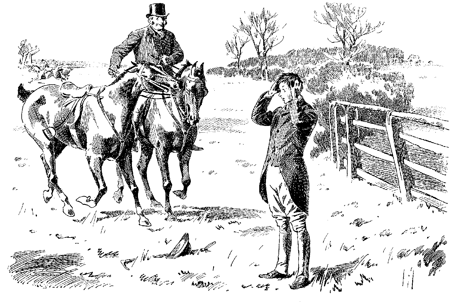 Sporting Farmer (to young Pupil from provincial town, who has just made his first effort to ride over a Fence). "Now then, jump on again! Better luck next time! You'll like it after a bit!"
