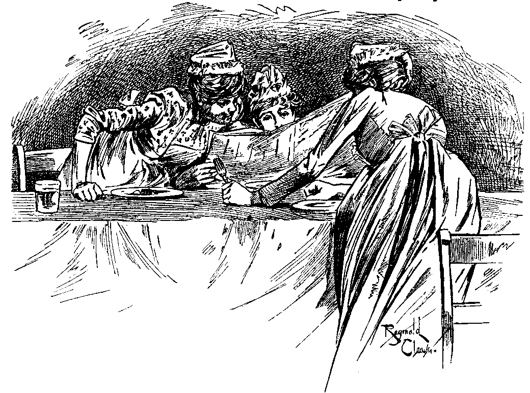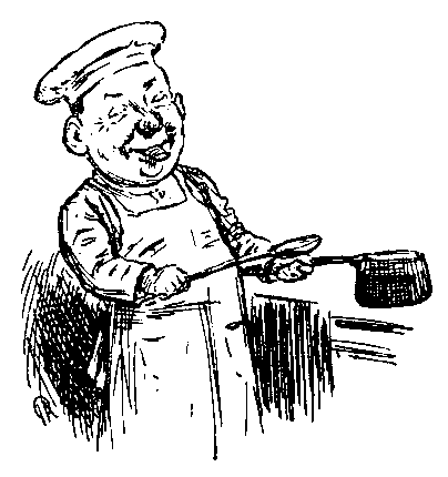 "Tyke three 'aputh of whilks, 'Erne By sort fer choice, and chuck 'em wiv a saveloy and a kipper into a sorcepan, if you can nick one from a juggins. Bile 'em till they're green, and add 'arf a glorss of unsweetened, tho it's a pity to wyste it. If toimes is 'ard, the kids and the missus can 'ave the rinsings, or go wivout. Taike my tip, and don't you be a bloomin' mug. You can blyme well stick to the juggins' sorcepan. You may, I dessay, raise arf a dollar on it." There speaks the true gourmet, with single-hearted straight-forward egotism, worthy of a City alderman, in all the glory of a civic banquet. To none but an artist in guttlery would that touch of genius about the kids and the missus occur.