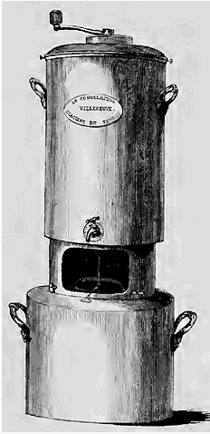 M. Joanne a encore imaginé une lampe à gaz pour la combustion de l'hydrogène liquide. Ses lampes méritent à tous égards d'attirer l'attention; il a innové encore de ce côté. Avant lui, pour éteindre la lampe à gaz, on était obligé d'ôter le verre, de souffler et de mettre un éteignoir sur la capsule à gaz; il a introduit dans ces lampes un bec éteignoir qu'il suffit de tourner pour intercepter immédiatement le passage du gaz. De plus, il fait brûler le gaz hydrogène comme l'huile dans une mèche circulaire à courant d'air. Nous aurons occasion de revenir plus tard sur l'avenir de l'hydrogène liquide et sur la place qu'il doit occuper dans les produits de consommation usuelle, surtout entre les mains d'hommes intelligents et inventifs comme ceux dont nous venons de parler.
