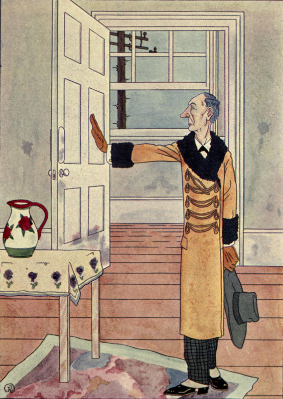 “Give me my domino,” he said. “These clues must be followed up,” then pausing, while his quick brain analysed and summed up the evidence before him—“a young man,” he muttered, “evidently young since described as a ‘pup,’ with a long, wet snout (ha! addicted obviously to drinking), a streak of white hair across his back (a first sign of the results of his abandoned life)—yes, yes,” he continued, “with this clue I shall find him easily.”