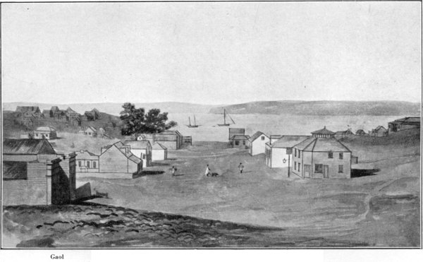 Queen Street in 1843, showing Stocks in front of Gaol 53