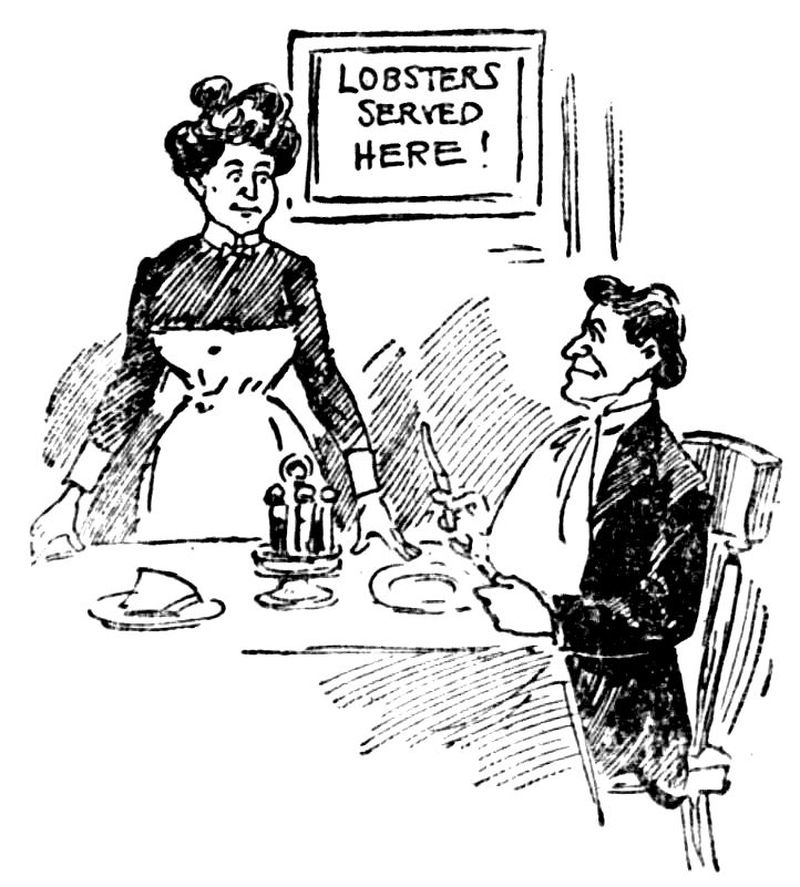 While I loitered in the grocer's who should come in but Dr. Instantaneous, as gay and chipper as though he had never killed a man in his thirty years of deadly practice. He's a crank on the liquor question, and to stave him off, I said: