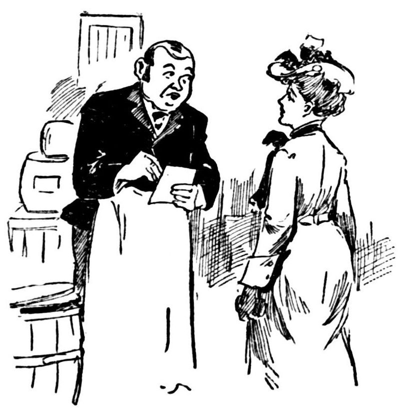 When I saw the same young matron who had ordered "condemned milk" and those other astonishing things the other day, I pricked up my ears, under the belief that something rich, rare and racy might happen.