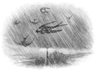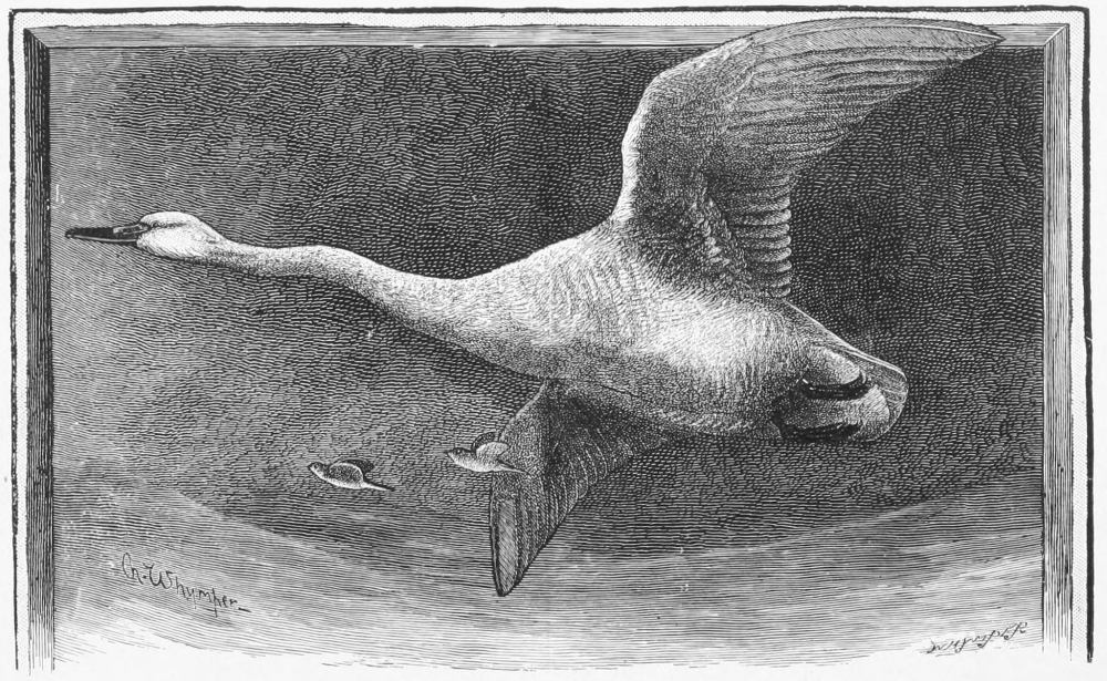 And they come in strange company. Sometimes the wild swan, quite an island for the little birds, flies winnowing the air beside them; sometimes a flight of hawks, but with their minds too full of their journey to think of harming their small fellow-voyagers; always with the sound of a multitude about them, and the murmuring of innumerable wings. Pitch dark the night, but somewhere or another is a leader, and they follow, wild duck and swallow, sea-fowl and dove, broad-winged geese and tiny gold-crest wrens, an instinct-driven mob that, in spite of all perils of storm and of distance, keeps its course, with dogged courage, and steers straight for the land that is to be its summer home. Lighthouses have become our best observatories for these annual transits, and the descriptions that are given of the mobbing of the great sea-lanterns by the hurrying flights of strangely assorted birds, are so curious as to be scarcely credible. What they suppose it to be, this bright revolving light in the dark waste,{21} we cannot of course tell; but they have learned by experience that it means that land is very near, and so they all swerve in their course to pass through its rays. And those who keep the lighthouses tell us of the streams of birds that pass, flashing white for an instant in the glare of the lamp and then disappearing, and of still larger companies that fly overhead and out of sight, filling the night-air with the sound of rushing wings and the clamour of different voices, “feeling for each other in the dark,” as Bunyan says, “with words.”