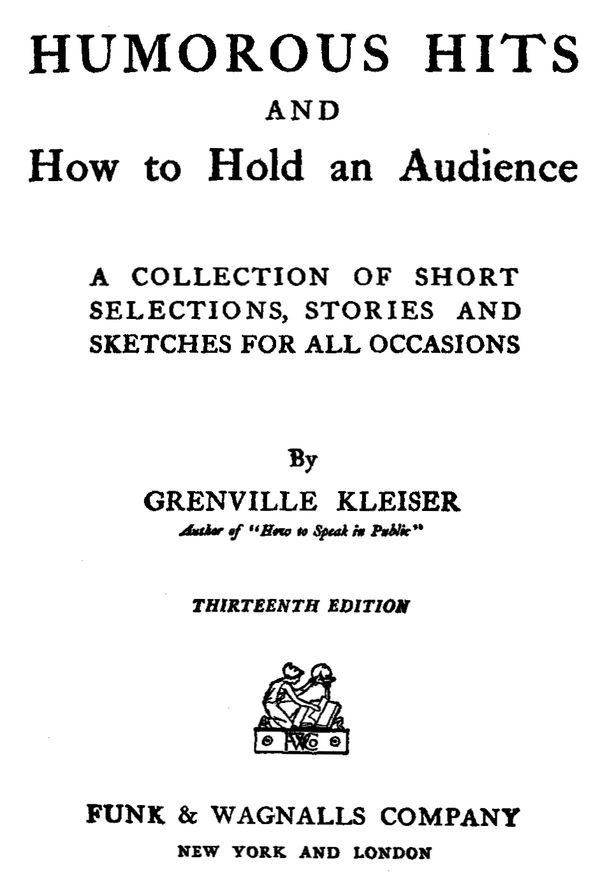 It is believed that the book will be valuable not only to the amateur and the professional reader, speaker, elocutionist, and entertainer, but also to the after-dinner and impromptu speaker, the politician who wants to make a "hit," the business man who wishes to tell a good story and tell it effectively, the school-teacher in arranging her "Friday Afternoon" programs, as well as for reading aloud in the family circle, and for many other occasions.