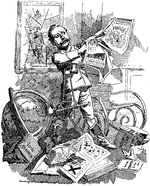 When we add to this brief summary the Jubilee of Queen Victoria in 1887, the passing of Lord Beaconsfield and Bright among the elder statesmen, and the tragic eclipse of Parnell, it will be seen that there was enough and more than enough to[Pg 8] engage the pen and pencil of Punch as a political and social chronicler. Mention has already been made of our thorny relations with Russia. With regard to Germany, the attitude of England might be described as one of reluctant admiration punctuated by moments of misgiving. These moments were not infrequent in the days of the old Emperor; they ceased during the brief reign of his son, only to recur in a more acute form when Kaiser Wilhelm II "dropped the pilot," made it clear that he intended not only to rule but govern, and by his meteoric versatility and frequent references to his divine mission and to the Germans as the chosen race, awakened the world to the emergence of a new and formidable promoter of European unrest. Our relations with France were correct rather than cordial; her rapprochement with Russia did not make for popularity on this side of the Channel; but in the main English observers read the inner meaning of the Boulanger episode aright, and without exactly exulting over his collapse, were relieved by his failure to revive a military dictatorship.