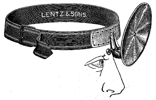 The rectum and the bladder being completely evacuated, the patient should be placed on the side in a good light, with the knees drawn up and one hand supporting the uppermost buttock. To condense the light on the parts to be examined the head mirror may be employed (Fig. 3).