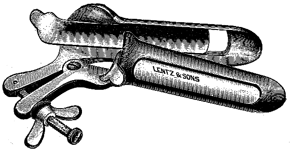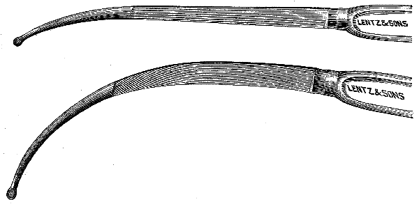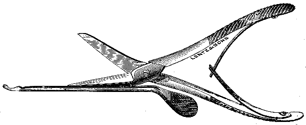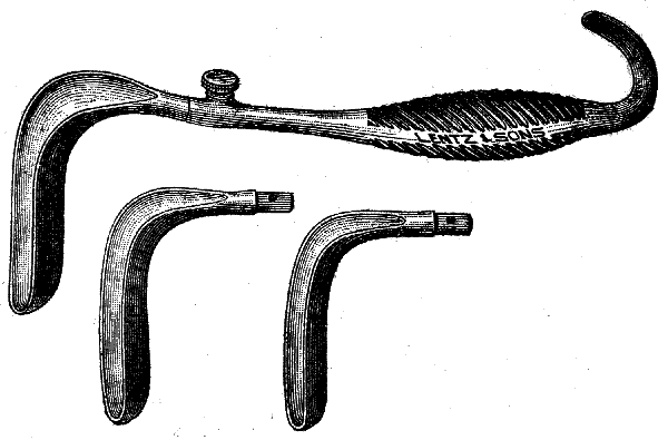 In cases of fissure the speculum ani is seldom required by those accustomed to making rectal examinations. In the majority of instances the possession of the tactus eruditus—education of the sense of touch—will enable the surgeon to form a correct diagnosis without the aid of this instrument, and thus save the patient much pain. If a speculum should be required, the instrument of Aloe (Fig. 5) or of Sims (Fig. 6) may be employed.