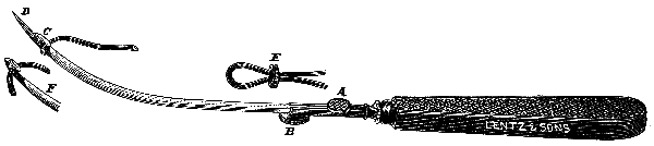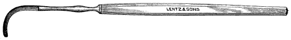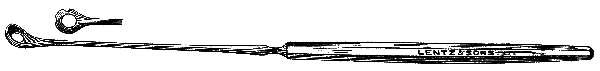 If the internal opening be any distance up the bowel, Allingham's instrument (Fig. 46) facilitates the passage of the ligature. In using it, remember that it is intended to draw the cord from the bowel out of the external orifice, and not vice versa. This instrument has been modified and improved by Helmuth, of New York. (Fig. 47.)