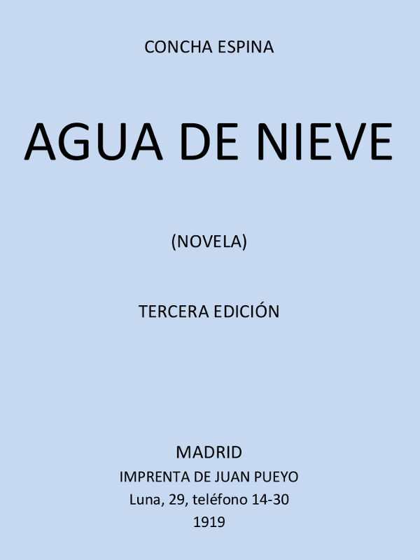 AGUA DE NIEVE (novela). (Tercera edición.)