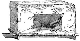 Another very remarkable institution of the Manitaries is the sudatory. When a man intends to undertake anything, and to implore by medicine the aid of the higher powers, he builds a small sudatory of twigs, which is covered all over with buffalo hides. Before the entrance is a straight path, forty feet long and one broad, from which the turf is taken off and piled up in a heap at one end opposite the hut. Near this heap a fire is kindled, in which large stones are made red hot. Two rows of shoes, sometimes thirty or forty pair, are placed along the path. As soon as the stones are hot, they are borne into the hut, where a hearth has been dug, on which the hot stones are laid. The whole population sit as spectators on either side of the path, where are placed a number of dishes with provisions, such as boiled maize, beans, meat, &c. An old medicine man is appointed to conduct the ceremonies. He walks from the heap of turf over the shoes, taking care always to set his feet upon them, to the sudatory. The young man, for whom the ceremony is performed, stands with only his breechcloth at the entrance of the sudatory, where for some time he wails and laments. The medicine man comes out of the hut, with a knife or arrow head, and cuts off a joint of his finger, which he throws away, as an offering to the lord of life, or to some other object of superstition, in which the young man has placed his confidence. After this operation the magician takes a willow twig, goes to the dishes containing {402} the provisions, dips the twig in each, and throws a portion of the contents in the direction of the four cardinal points, for the lord of life, the fire, and the divers supernatural powers, of which he makes open proclamation. The provisions are then distributed among the men, women, and children who are present. The older men go into the sudatory, the women carefully cover it, and water is sprinkled with bunches of wormwood, from vessels standing ready without upon the hot stones, which[Pg 380] throws the persons present into a profuse perspiration; the men, meanwhile, all singing at once to the rattling of the schischikué. When they are satisfied they call to the women on the outside to remove the hides. After this, a buffalo head, with the snout foremost, is carried over the row of shoes to the heap of turfs, where it is placed in the same direction. The ceremony is now complete. The robes with which the hut was covered, often sixty or eighty in number, are given by the young man to the magician for his trouble, who distributes some of them among the spectators. The persons who have submitted to the operation put on their robes, and remain in the open air till their bodies are dry, this medicine being generally performed in the summer. In the winter they prepare such steam baths in their own huts, but at that season they are not medicine, and the men and women assemble together. The grand ceremony just described is instituted especially when they wish to ask success for a military expedition, or for some other important enterprise. They then purchase a red blanket or a piece of blue cloth, which they offer to the divinity, hanging it on a pole behind the sudatory, where it is left to be destroyed by the wind and weather.