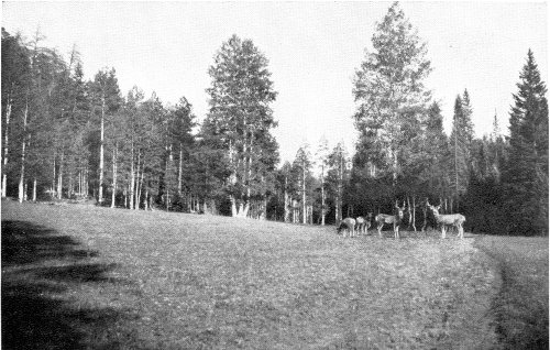 Farther to the south is the Kaibab Forest and the North Rim of Grand Canyon, remote from traveled ways. Kaibab National Forest is the largest and most beautiful virgin forest in the United States. Beneath the stately pines, spruces and firs, the grassy forest floor is as clean as a carefully groomed lawn, and there are many open parks, aspen encircled, of bewitching charm. Numberless deer roam unmolested through this fairy forest and the rare white-tailed squirrel flits ghostlike through its aisles. There Roosevelt hunted and discriminating beauty-lovers have sought the region for years.