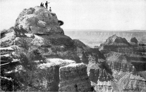 Words are of little avail to describe the Grand Canyon. Across the great plateau the Colorado River has cut a series of canyons about 220 miles long, a mile in depth and twelve miles in width. The Kaibab division is the deepest and wildest part of the Grand Canyon and presents its sublimest scenes. On the North Rim are some of the most celebrated of all the viewpoints, though known only to a few hundred adventurous travelers—Bright Angel Point, Point Sublime, Point Imperial, Cape Final and Cape Royal.