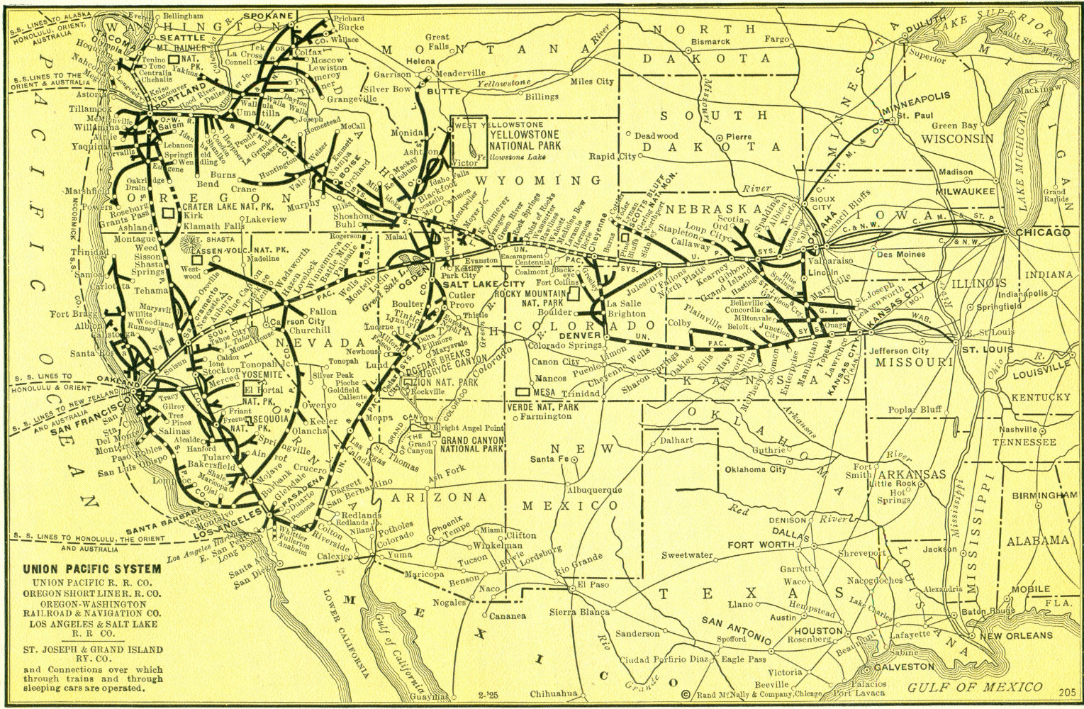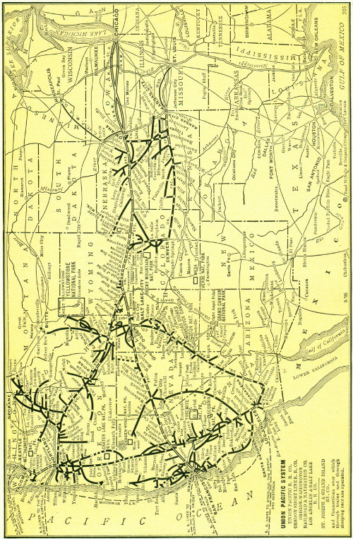 Measured by civilization’s yardstick, the unknown land in which they lie is a frontier, still in the pioneer stage of existence. It is not so long since the forts along the way actually repelled Indian attacks; it is not so far to fastnesses where cougars come forth to prey on deer, or to desert valleys where wild mustangs range. On the edge of the plains are ruins of primitive dwellings of which the modern Indian knows nothing; in many a secluded canyon are the more inscrutable habitations of the 6 cliff dwellers. The indomitable ranchers have built quaint, poplar-shaded villages with homes of adobe, and their farms are often fenced with stone.