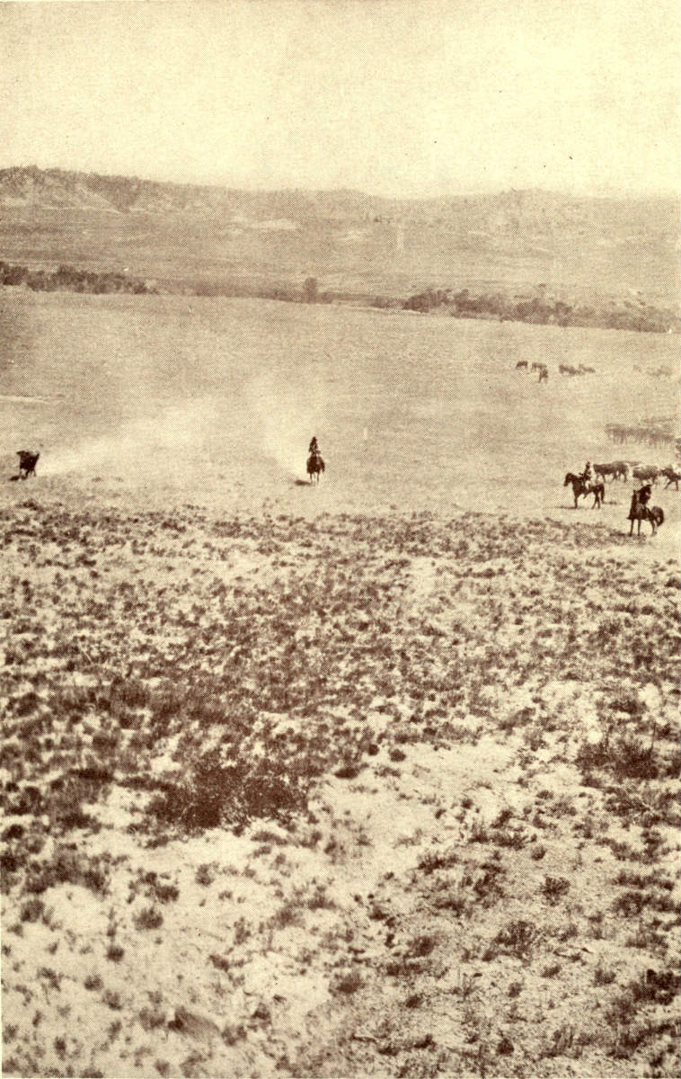 Few cattle were found as the riders went north, but as soon as they turned east and south they came on frequent groups, brought in not long before from the round-up. The cattle were fat and logy, and the work of pushing them along was slow, so that not nearly so much ground was covered, nor so much accomplished as had been hoped. Nevertheless, it was a respectable bunch of cattle that was driven up that afternoon near the wagon, where the work of cutting began.