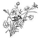 his morning, May 5, as I walked through the fields the west wind brought to me a sweet, fresh odor, like that of fragrant violets, precisely like that of our little white sweet violet (Viola blanda). I do not know what it came from,—probably from sugar maples, just shaking out their fringe-like blossoms,—but it was the first breath of May, and very welcome. April has her odors, too, very delicate and suggestive, but seldom is the wind perfumed with the breath of actual bloom before May. I said it is Warbler time; the first arrivals of the pretty little migrants should be noted now. Hardly had my thought defined itself when before me, in a little hemlock, I caught the flash of a blue, white-barred wing; then glimpses of a yellow breast and a yellow crown. I approached cautiously, and in a moment more had a full view of one of our rarer Warblers, the Blue-winged Yellow Warbler. Very pretty he was, too, the yellow cap, the yellow breast, and the black streak through the eye being conspicuous features. He would not stand to be looked at long, but soon disappeared in a near-by tree.