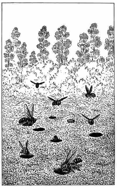 | Ammophila Urnaria using Stone to pound down Earth over Nest | 39 |