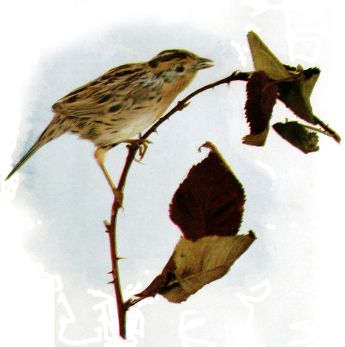 The Leconte’s Sparrow has an interesting history. It was first discovered and named by Audubon in 1843. Later, his account seemed almost a myth, for no more individuals were taken, and even the specimen on which he based his published report of the new species was lost. It was not seen again until Dr. Coues rediscovered it in 1873, obtaining his specimens on the Turtle Mountain, near the border of Dakota.