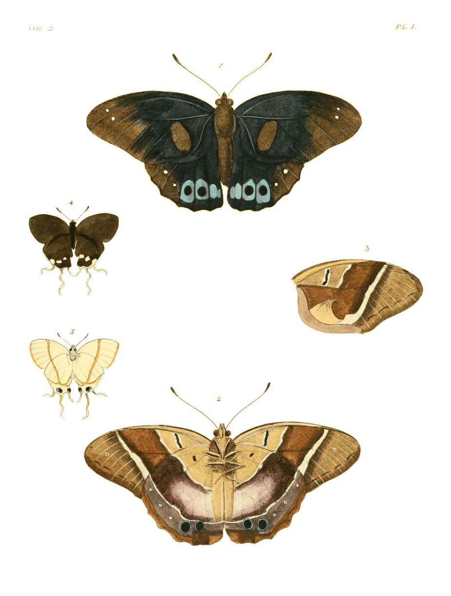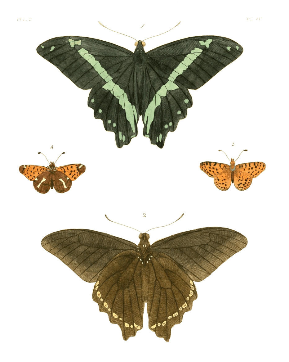 The reader will observe, that in giving trivial names I have strictly followed the method of Linneus. The Butterflies entitled to be ranked among the Equites, are named after some great personage found among the Greeks and Trojans; as in Plate iii. Fig. 1. where I have named the insect Antenor, from a Trojan prince; and Plate ix. Fig. 1, 2. Menestheus from a Grecian one; one belonging to the Eq. Trojanes, the other to Eq. Achivi. I have likewise followed his rule in naming the insects belonging to other classes; and given such as I concluded to be the most easily retained in the memory. To this end also I have used the Latin language in preference to the English, for the great liberty it allows {vi}of compounding and decompounding words and names; a circumstance of the greatest consequence in a business of this sort.