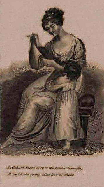On the contrary, young women, without instruction and application, have always a roving imagination. In want of substantial employment, their curiosity hurries them on to vain and dangerous pursuits. Those who have somewhat more vivacity, pique themselves on a superior knowledge, and read, with avidity, every book which flatters their vanity: they become enamoured [30]of novels, plays, and "Tales of Wonder," in which love and licentiousness predominate: they fill their minds with visionary notions, by accustoming themselves to the splendid sentiments of heroes of romance, and hence are rendered unfit for the common intercourse of society; for all these fine airy sentiments, these generous passions, these adventures, which the authors of romance have invented for mere amusement, have no connexion with the real motives which agitate mankind, and direct the affairs of the world; nor with those disappointments which usually accompany us in almost every thing we undertake.