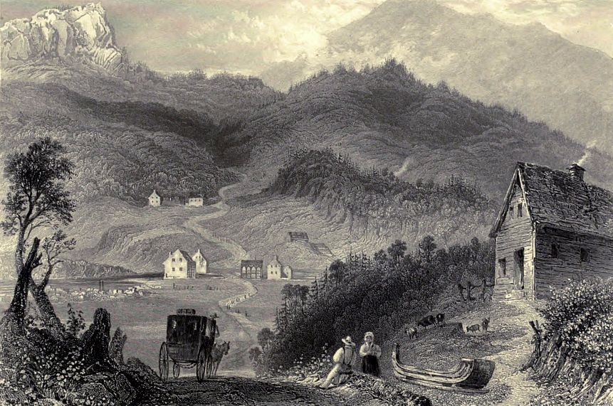 The cultivated country northward of Quebec does not extend far, being closely hemmed in by the range of mountains, and settlement being obstructed through the very imperfect titles by which alone the land can be conveyed. Immediately westward, in front of the fortification, are the Plains of Abraham, memorable as the scene whereon Quebec was gained by the gallant Wolfe, and whence only it can be successfully assailed. The summit, indeed, is 330 feet high, which does all but command the loftiest pinnacle on which Fort Diamond stands. As some security against this danger, four martello towers have been so placed as to range over the whole plain. Immediately to the north, a road leads along the heights to the village of St. Foix, and to the beautifully secluded dingle of Sillery, about four leagues in length and one in breadth, formerly the seat of a missionary settlement, which we shall have occasion again to mention. In the same direction from the suburb of St. Roch is the Huron village of Lorette, near the banks of the river St. Charles, which in this neighbourhood forms a beautiful cascade. Onward still, twelve miles from Quebec, is the lake of the same name, about four miles long and one broad. It is divided into two parts by projecting ledges, and the upper one especially is finely diversified by rocks, woods, bays, hills, and lofty mountains in the distance.